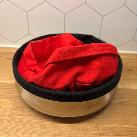 Brødkurv/bolle med to trekk fra Kitchn. Det svarte trekket må fuktes og strekkes,krympet litt i vask.