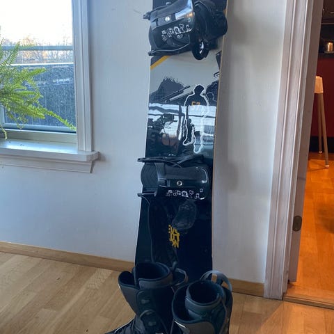 Vimana snowboard på 156 cm med tilhørende bindinger størrelse M.
