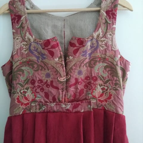 Damaskkjol sydd i tofarget ulldamask fra Uldvarefabrikken i liv og stakk. Bunaden er lite brukt, siden jeg syr selv har jeg alt for mange. Derfor vil jeg selge denne. Håndsydd liv, livvidde 84 cm. Stakklengde er 100 cm. Fin lengde til meg som er 165 lang. Jeg har sydd ei veske i blå damask som passer til, men ikke satt på veskelås. Pris for bunaden er 13000. Med påsydd veskelås 15500.