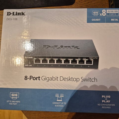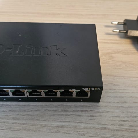 D-Link DGS-1005P nettverksswitch er en 5-porters gigabit desktop-switch med PoE+ (Power over Ethernet). Enheten har fem RJ45-porter som støtter gigabit-hastigheter for kablet nettverkstilkobling. Fire av portene støtter PoE+ for strømforsyning av kompatibelt nettverksutstyr som tilgangspunkter, IP-kameraer eller VoIP-telefoner via nettverkskabel. Switchen er beregnet for bruk på skrivebord og krever ingen avansert konfigurasjon (plug-and-play). Egnet som tilleggsutstyr for utvidelse av kablet nettverk i hjem eller mindre kontor.