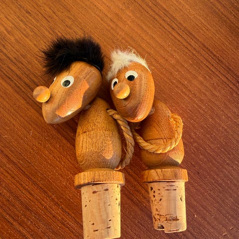 Vintage Trefigur med bjelle ca. 12 cm brun