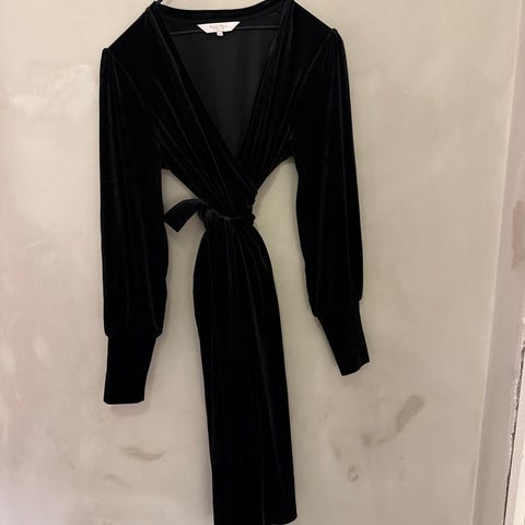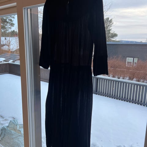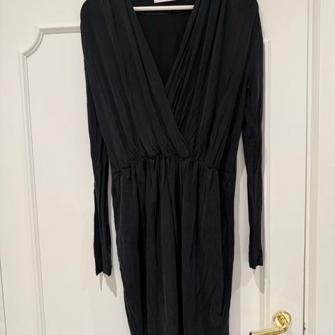 Veneta dress fra Samsøe Samsøe. Lite og pent brukt, men har fått en liten rift i det ene hullet der båndet tres gjennom. Litt gjennomsiktig. Er vasket på finvaskprogram med Milo parfymefri.
