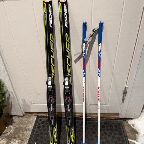 Fischer langrennsski med tilhørende staver og skisko. Skiene har Fischer-bindinger og er i klassisk langrennsmodell. Det følger med et par langrennsstaver som passer til skiene. I tillegg følger det med to par skisko: ett par fra Fischer str 35 og ett par fra Alpina str 31. Skiskoene har snøring og glidelås i front samt overtrekk som beskytter mot snø og fukt. Utstyrspakken passer til klassisk langrenn. Skiene er i str 90 (smørefri) og 130 (felleski), og staver str 90 og 95.