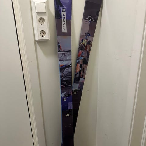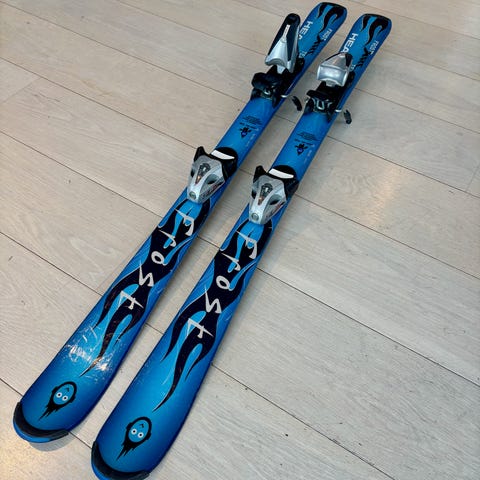 Miss Ion alpinski i blått mønster. Ski med integrerte bindinger, egnet til alpinbruk i preparerte bakker. Ski lende 110