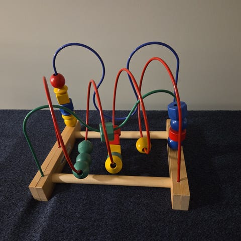 Labirintleke fra kid woods med fargerike treperler på metallbaner.