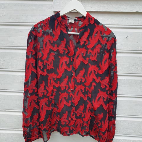 Vintage genser i meshstoff fra Hennes, str. XL 🖤 Vide ermer og splitt på sidene. Pent brukt og i bra stand.