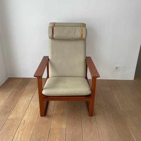 Gøy safaristol designet av Børge Jensen for Bernstoffsminde Møbelfabrik på 1960-tallet. Stolen er utformet i bøk med sete og rygg av lys kanvas. Kanvas er nyrensket og står flott med minimale bruksspor. Treverk har noen merker. Cool stol.