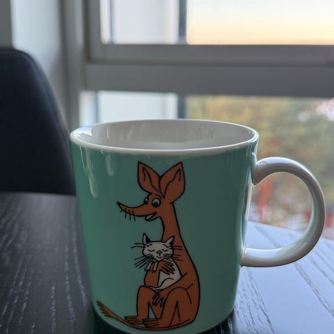 Arabia Mummikopp Sniff blå uten merkelapp. Må hentes i Bergen.