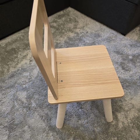 Nydelig barnestol i god kvalitet. Hjemmelaget (ikke av meg, men kjøpt på Finn for noen år siden).