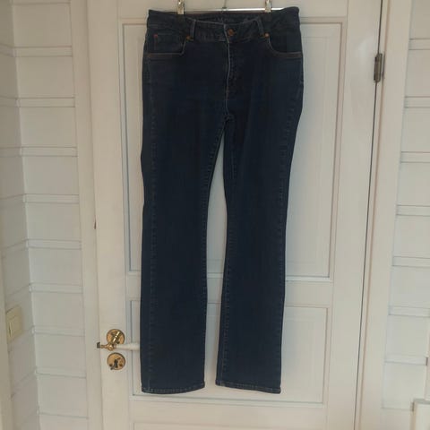 Jean Paul Bootcut olabukse for dame i størrelse M med livvidde W31. Buksen er i blå denim laget av bomull. Klassisk 5-lommersmodell med glidelås og knapp i front, samt beltehemper i linningen. Passformen er bootcut med noe utsving nederst i beina. Egnet som hverdagsbukse og kan kombineres med ulike topper og sko for både uformelle og mer oppkledde antrekk.