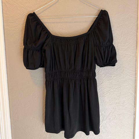 Kort bomullskjole fra H&M selges. Offshoulder med strikk over brystet. Brukt ved én anledning. Størrelse XL.