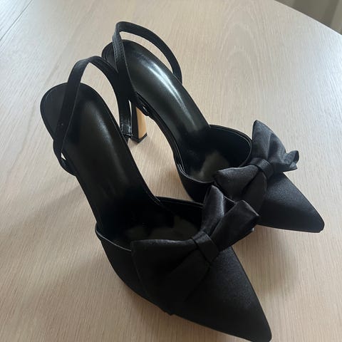 ASOS hæler i størrelse 38. Svarte slingback-hæler med spiss tå og sløyfe.