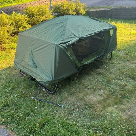 Tidlig eier har bare slått det opp på gress plen, skulle brukes bare ligget i garasjen