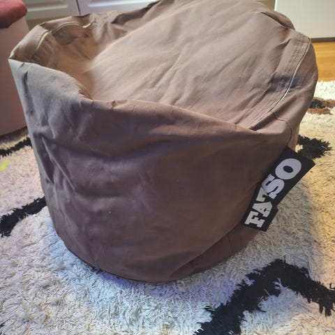 To saccosekker som trenger litt ekstra fyll for å fungere optimalt. Har noen flekker, ikke forsøkt vasket bort. Selges helst samlet.