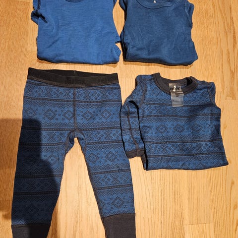 Ull utside, bomull innside, med unnta av en body som er 100% merinoull.