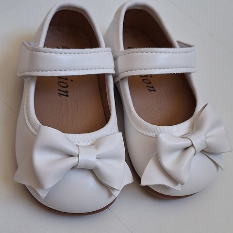 Brudepikesko i str 22 selges. De er smale i str, så de passet ikke datteren min som har litt breie føtter.