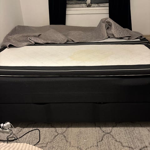 hvit enkeltseng som kan åpnes og bli til en dobbelseng