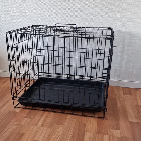 Zoodzaker hundebur i metall i fargen svart. Buret har gitterkonstruksjon med uttakbar bunnskuff i metall for enkel rengjøring. . Buret har 2 låsbare dører for inn- og utgang og kan slås sammen for lagring når det ikke er i bruk. Lite brukt.