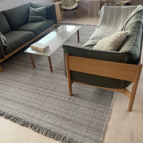 Meget pent Halvor Bakke Kleber teppe i 100% ull i fargen koksgrå selges. Størrelse 200x290.