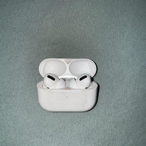 Selger et par AirPods Pro (1. gen) i pent brukt stand. De fungerer som de skal, men vær oppmerksom på at høyre ørepropp er defekt og lager en del støy under bruk.