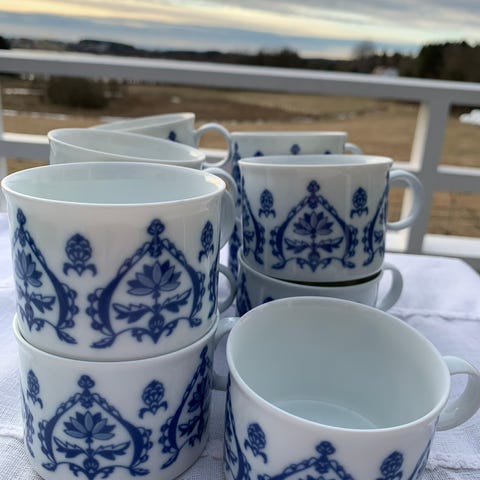 3 stk pent brukte kopper og fløtemugge fra Desirée Danmark selges samlet. Fra et klassisk sett produsert på 1960-tallet.