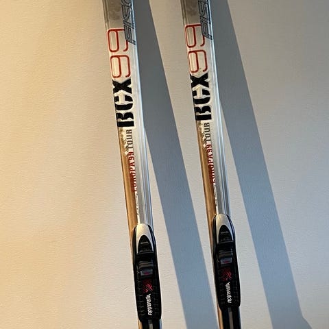 Godt brukt over tid, men mye moro igjen. Ski ble levert inn for prepp for to sesonger siden.