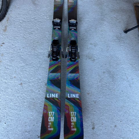 Line Pandora alpinski i lengde 172 cm. Skiene har hvit overside med grafikk og blå såle med Line-logo. Breddeangivelse på siden viser 142/115/139 mm, noe som gir en relativt bred ski egnet for løssnø og frikjøring. Radius er oppgitt til 16,5 m. Skiene leveres med monterte bindinger, som kan justeres innenfor et visst skostørrelsesområde. Passer for kjørere som ønsker en bred alpinski til bruk i bakke og offpiste.
