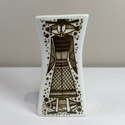 Arne Lindaas vase. Porsgrund. Høyde 14,5 cm, bredde ca 12 cm og dybde ca 6 cm. Pris 200kr. Må hentes I Skotselv, sender ikke