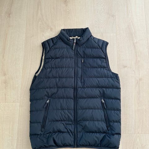 Cubus Super Light Down vest for herre i størrelse M. Vest i blå farge fylt med dun. Modellen har høy krage og hel glidelås i front. To sidelommer med glidelås. Lett og komprimerbar dunvest som kan brukes alene eller som et ekstra isolerende lag under ytterjakke.
