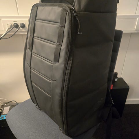 Meget pent og nesten ikke brukt Db (Douchebag) Hugger ryggsekk 2.gen 30L i "mosegrønn" farge (litt gråaktig). Sekken har polstrede skulderstropper og ryggpanel, samt bærehåndtak på toppen. Den har stort hovedrom som åpnes med glidelås, og flere innvendige rom og lommer for organisering. Passer til daglig bruk, skole, jobb eller reise.