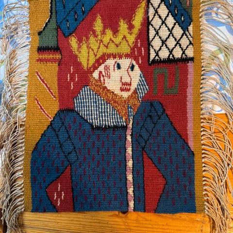 tapestry - vevd - vevnad - håndvevd - håndarbeid - husflid - naturmaterial - vintage - retro - modern - grønn - blå - gul - hvit - naturlige materialer - tekstilkunst - folkekunst - kunsthåndverk