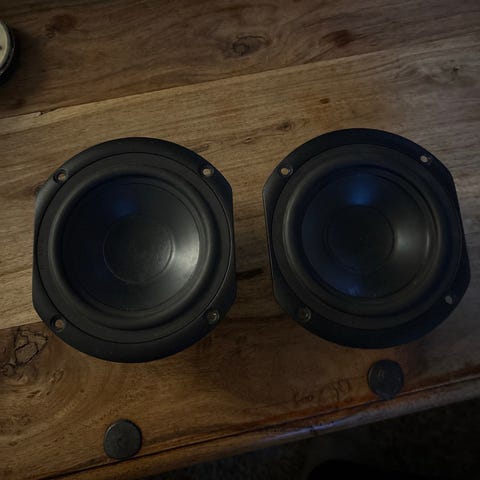 Selger 4 stk orginale mellom toner til Cerwin Vega DC serien og 1515. Disse er tatt ut av noen 1515 jeg hadde for mange år siden. Di var i orden når jeg tok di ut. Har ligget i kjelleren i mange år og lakken på di begynner å flasse her og der, men det går an å fikse for di som vil. Dette er orginale Cerwin Vega DCM 6 mellom toner i 6,5 tommer som er i alle Dc og 1515. Selges par vis eller alle 4 for 1000kr. Ta kontakt for om du vil ha 2 eller 4 stk for riktig fraktpris.