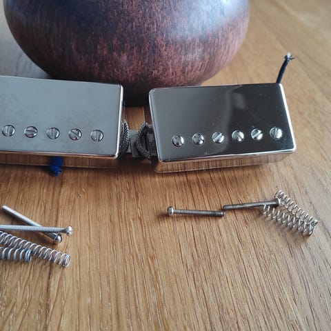 Som tittelen viser til, ikke 72 Reissue, men ekte CuNiFe. For hals, men også svært vellåtende i bro. Ubetydelig brukt. Har dessverre rotet bort skruene.