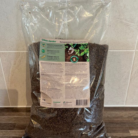 Bokashi Norge bokashistrø 3 kg kompoststrø. Den ene pakken er åpnet med 932 gram igjen. Pakket i 2021 - holdbar minst et år, står det på pakken. Lagret innendørs i romtemperatur.