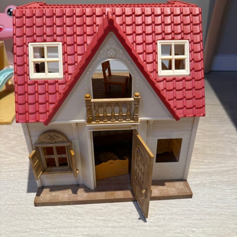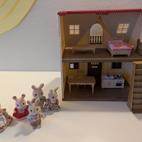 Sylvanian Families lekehus med sklie, er vell barnehage eller lignende. Lekehuset er i pastellfarger med flere etasjer og åpne sider, slik at det er lett å komme til med figurer. Det følger med en løs sklie som kan plasseres ved siden av huset. Inne i huset følger det med detaljer som bord, stoler, benk og huske. Passer til Sylvanian Families-figurer i standard størrelse og kan kombineres med andre sett i samme serie.