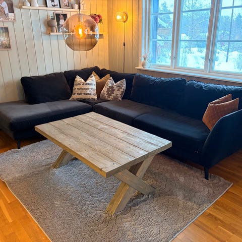 Lekker blå Construct hjørnesofa fra Skeidar – Svært god stand!