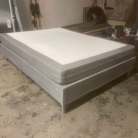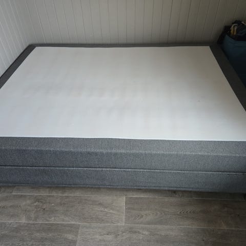 Kontinentalseng med trekk til ramme. Toppmadrass følger ikke med, men trekk til toppmadrassene følger med. Selges grunnet plassmangel. Ellers en veldig god seng. Kommer fra hjem med katter. Trekk kan vaskes. Det er kjøpt høyere ben for god plass til under sengen til evt lagring. Må hentes Myra, Arendal.