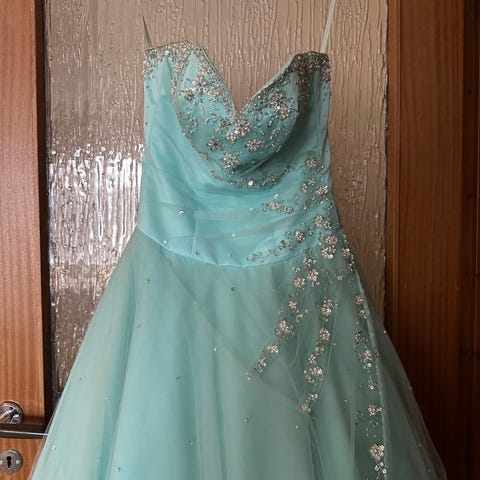 Selger nydelig rosa ballkjole str s/xs med justering i ryggen. Kjøpt brukt på Finn og brukt 1 gang på skoleball. Mangler noen paljetter på skjørtet, men ikke synlig.
