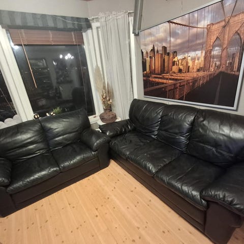 Pent brukt sofagruppe bestående av en 3-seter og en 2-seter gis bort samlet.