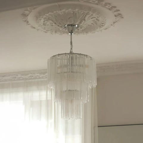 Selger en eksklusiv italiensk Murano-lysekrone i håndblåste glassrør (Tronchi-/glassrør-stil). Dette er en ekte “statement”-lampe som gir hotellfølelse og et mykt, luksuriøst lys – perfekt i stue, spisestue, trappesjakt eller rom med god takhøyde.