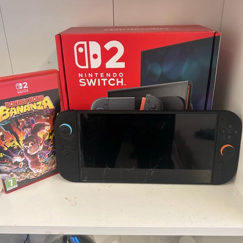 Nintendo Switch spillkonsoll. Håndholdt og stasjonær hybridkonsoll som kan kobles til TV eller brukes i bærbar modus. Støtter Nintendo Switch-spill på fysiske kassetter og som nedlastbart innhold. Egnet for én eller flere spillere, avhengig av spill og tilkoblet tilbehør.