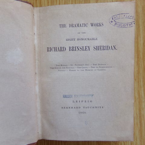 Boken "The american" av Henry James. Trykket og utgitt i Leipzig av Bernhard Tauchnitz i 1878. 2 bind på hhv. 288 og 288 (-16) sider. Tidl. bibl.bøker. Stemplet med "Halden Folkebibliotek" og "Haldens Klubs Læseforening."