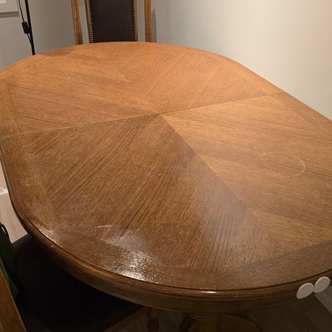 Vi selger 8 spisestuestoler og et gustaviansk spisebord.