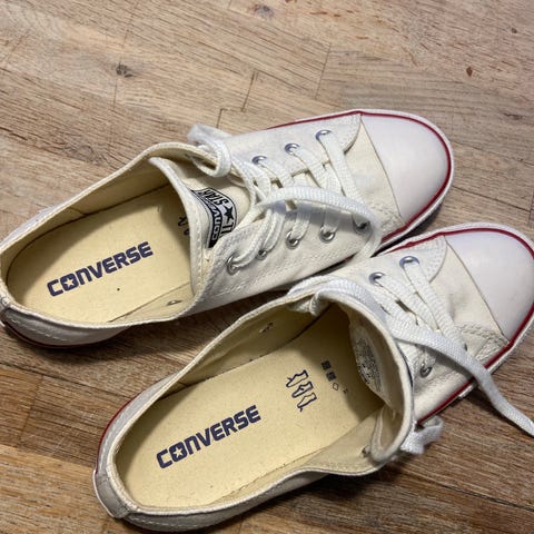 Converse sneakers joggesko i størrelse 37.5. Lave canvas-sko i tekstil med mønster og snøring foran. Militærmønster. Gummisåle og gummitå i hvit farge.