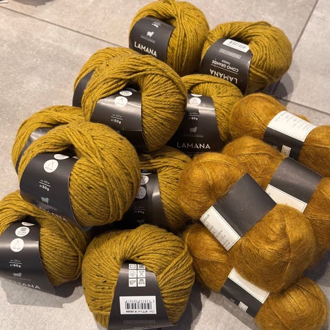 Det er 5 uåpnede nøster og rester i samme fargeskalaen.