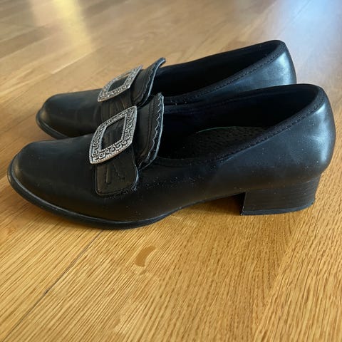 Bunadsskoene er brukt to ganger, én 17. mai og konfirmasjon. Selges da de er for små.