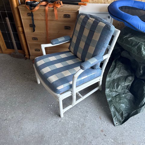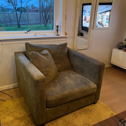 Noe slitt på ene armlene som vist på bildet, ellers fine