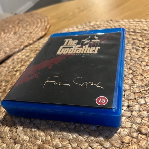 The Godfather The Coppola Restoration Blu-ray film. Utgave av spillefilmen The Godfather i restaurert versjon regissert av Francis Ford Coppola. Disk i Blu-ray-format med aldersgrense 15 år. Omslag med informasjon på flere språk på baksiden. Egnet for avspilling på Blu-ray-spillere som støtter regionen angitt på coveret.