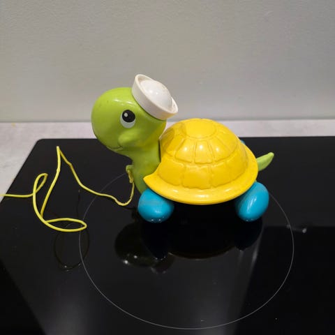 Funksjoner: Den har ofte en trekksnor som gjør at den følger etter deg når du går, mens den lager en karakteristisk metallisk lyd.