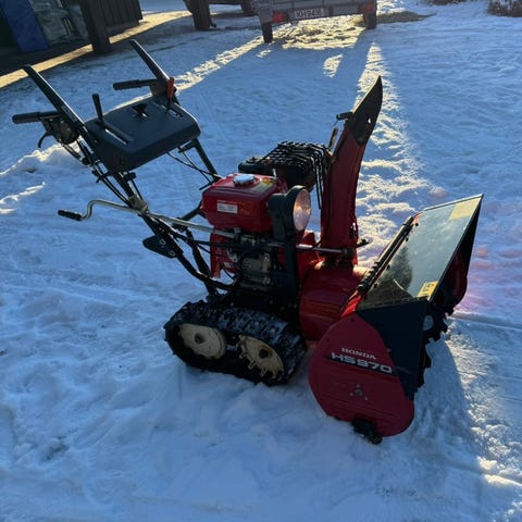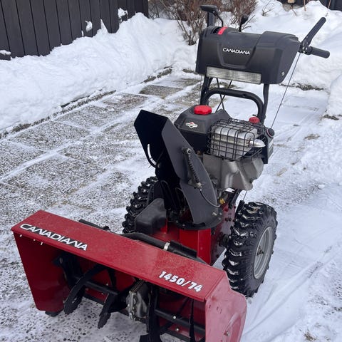 Canadiana snøfreser med kraftig OHV motor. Bredde 84 cm og høyde 63cm i front. Kjøpt ny på Felleskjøpet rundt 2010. Veldig lite brukt etter 2019. Starter veldig lett og går fint. Er selvsagt noe slitasje på mekaniske deler etter 10 års drift. Elektrisk start i tillegg til snorstart. Varme i håndtak. Justering av tut fungerer fint, både sideveis og opp og ned. Lys.